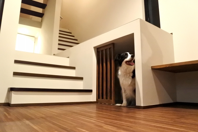 • ペットコーナーの造作: 階段下のデッドスペースやリビングの一角に、ケージやベッドを置くための専用の囲われた空間を造作します。家族の気配を感じながら落ち着いて過ごせるため、ペットの安心感につながります。